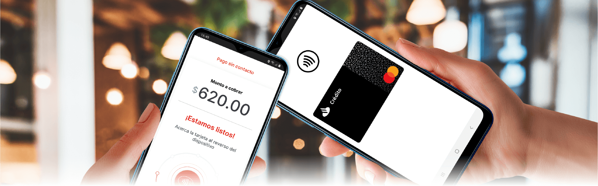Acerca la Tarjeta, Wallet o Smartwatch a la antena NFC de tu dispositivo.